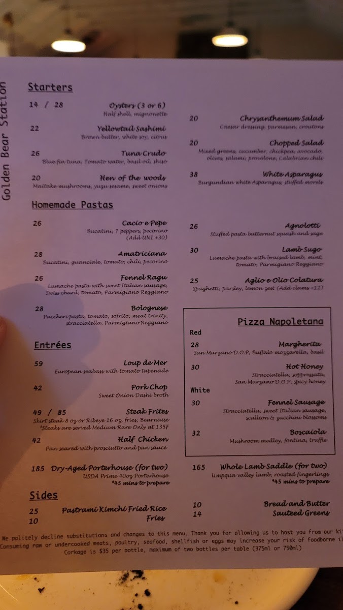 Welcome to Golden Bear Station, a hidden culinary gem nestled in Kenwood, California. This enchanting spot offers more than just food; it promises an unforgettable experience. Their menu is a celebration of homemade pasta dishes like the Cacio E Pepe and Amatriciana, each bursting with authentic flavors and crafted with passion. For heartier entrees, indulge in the exquisite Loup De Mer or the succulent Pork Chop, both sure to satisfy even the most discerning palate.